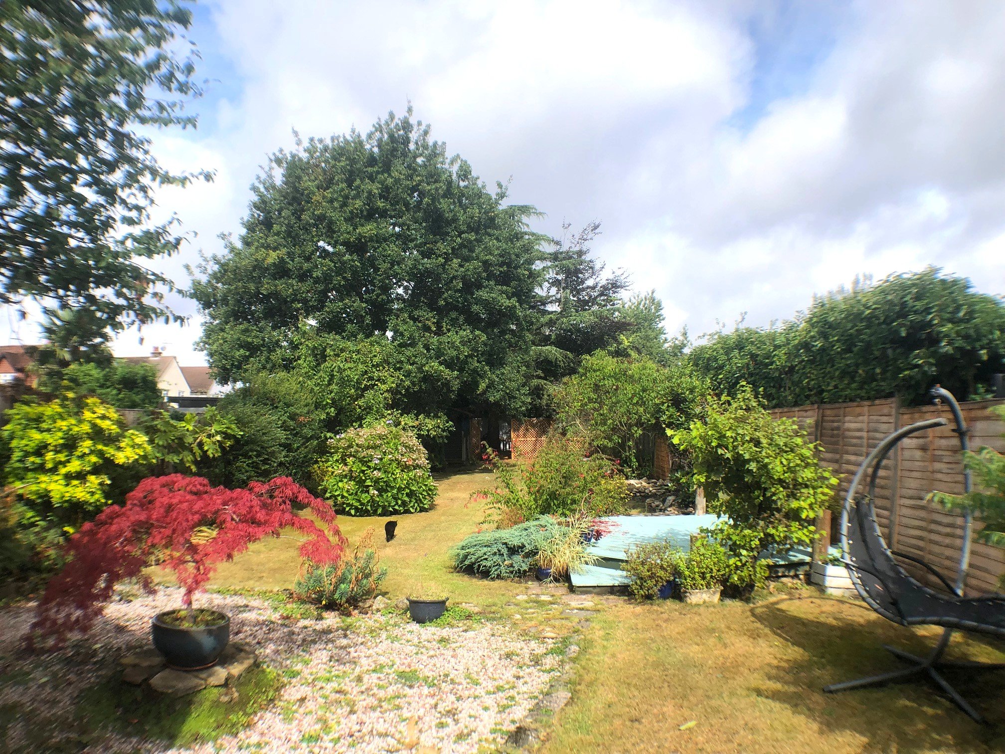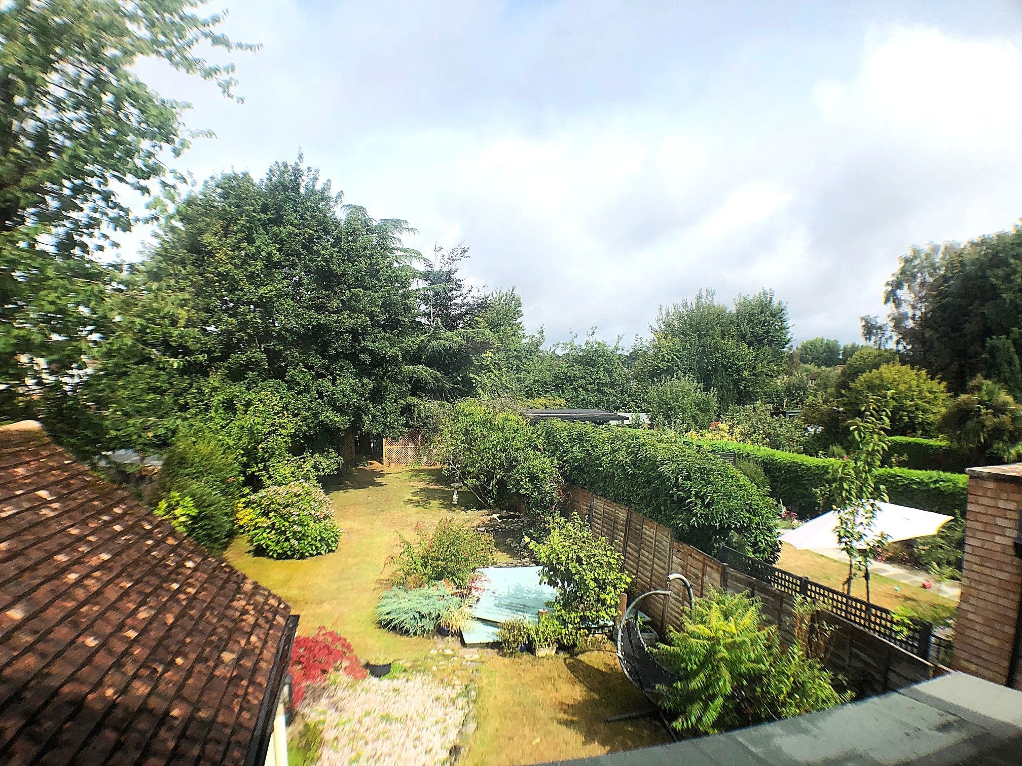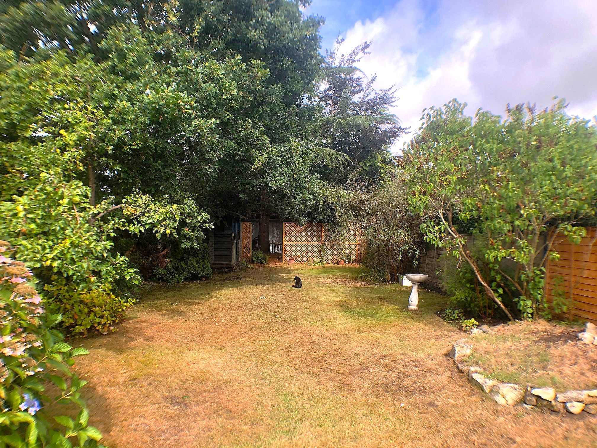 Rear Garden: Predominantly laid to lawn with various mature flower beds with trees and shrubs, raised decked seating area, rear trellised area for garden maintenance purposes, composting area and space for log store; WORKSHOP/SUMMER HOUSE insulated with power. Some exterior courtesy lighting. Rhubarb bed.